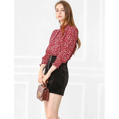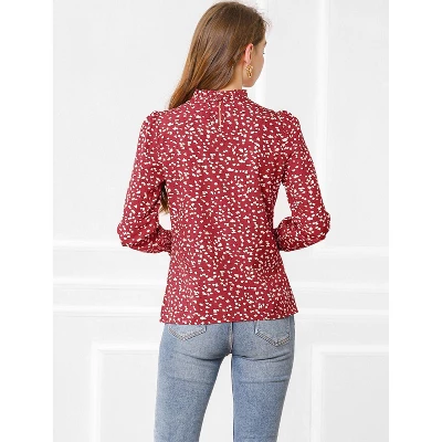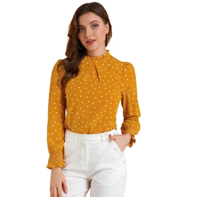 - Ruffled Stand Collar, Puff Long Sleeve, Smocked Cuffs