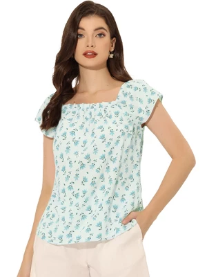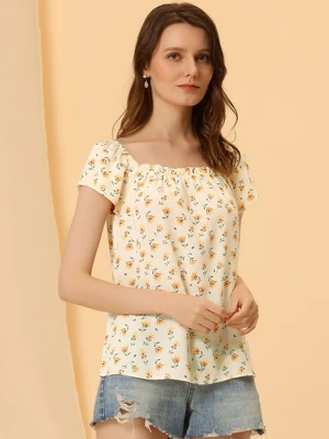 - Floral Printed, Elastic Square Neckline