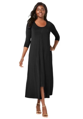 The dress features a double layer that splits down the front for a breezy look that moves with you. Dress it up or dress it down. Shaped silhouette