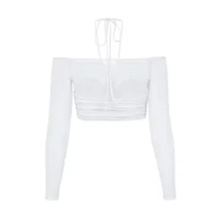 Not your typical crop top. Featuring an unique design combining an off-the-shoulder neckline with a layered mesh overlay, it creates a look both feminine and edgy. The stretch mesh and jersey makes for a comfortable and oh-so-flattering silhouette. Wear, have fun, repeat.