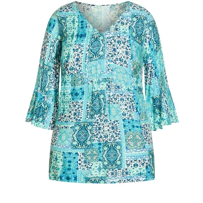Looking for a tunic that’s both stylish and versatile? Our Joanna Pintuck Tunic is just what you need! The aqua color, pintuck detail, and elbow-length ruffle sleeves make this tunic a stand-out piece.Everyday style made easy, Avenue is your one-stop-shop for plus size fashion. Inspired by a comfort-meets-style approach, this effortless brand marries relaxed silhouettes with dynamic prints and colors. From casual daywear to staple denim, Avenue has simplified your everyday dressing. Take your day-to-day look to new heights with comfortable basics or eye-catchingly printed pieces, all designed to keep you comfortable while flaunting your curves to perfection. Available in sizes 14 – 40.