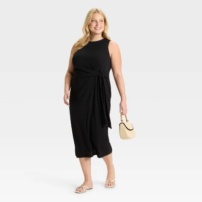 Whether you’re attending a formal event or enjoying a night out with friends, this Side-Tie Midi A-Line Dress from Ava & Viv™ is a go-to pick on any occasion. This midi A-line dress features a scoop neckline and side-tie closure for a chic and sophisticated look that will turn heads wherever you go. It’s made from recycled polyester-blend jersey fabric with added spandex for all-day comfort, while a side seam pocket provides handy space for small on-the-go essentials. Pair this midi dress with your choice of footwear to complete the look.